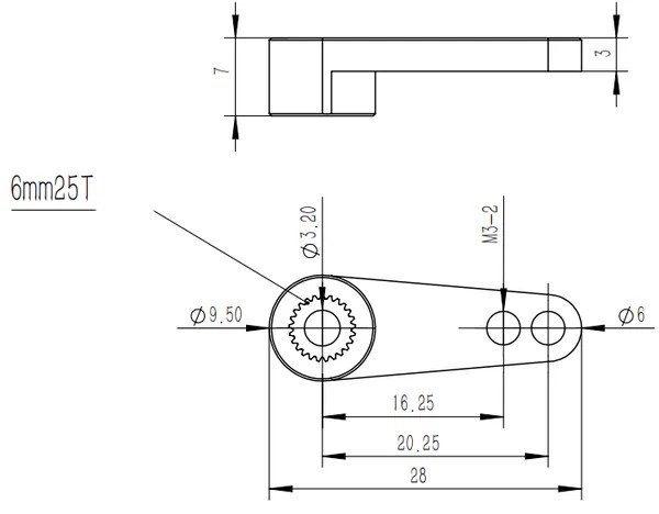 25T-6B Aluminium Servo Arm for 6MM 25T Servo