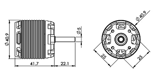 ●400MX(1100KV) motor incorporates radial fan in its end bell, creating powerful airflow to dissipate heat. Tweaks to motor design and reduction in weight not only contributes to dramatic power increase, the high efficiency cooling system enables cooler operating temperature during and after flights when compared to motor of previous generation.