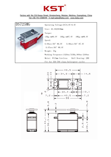 DS725MG HV Digital Coreless Servo 18kg.cm 0.07Sec for 550 & 700 Size RC Helicopter