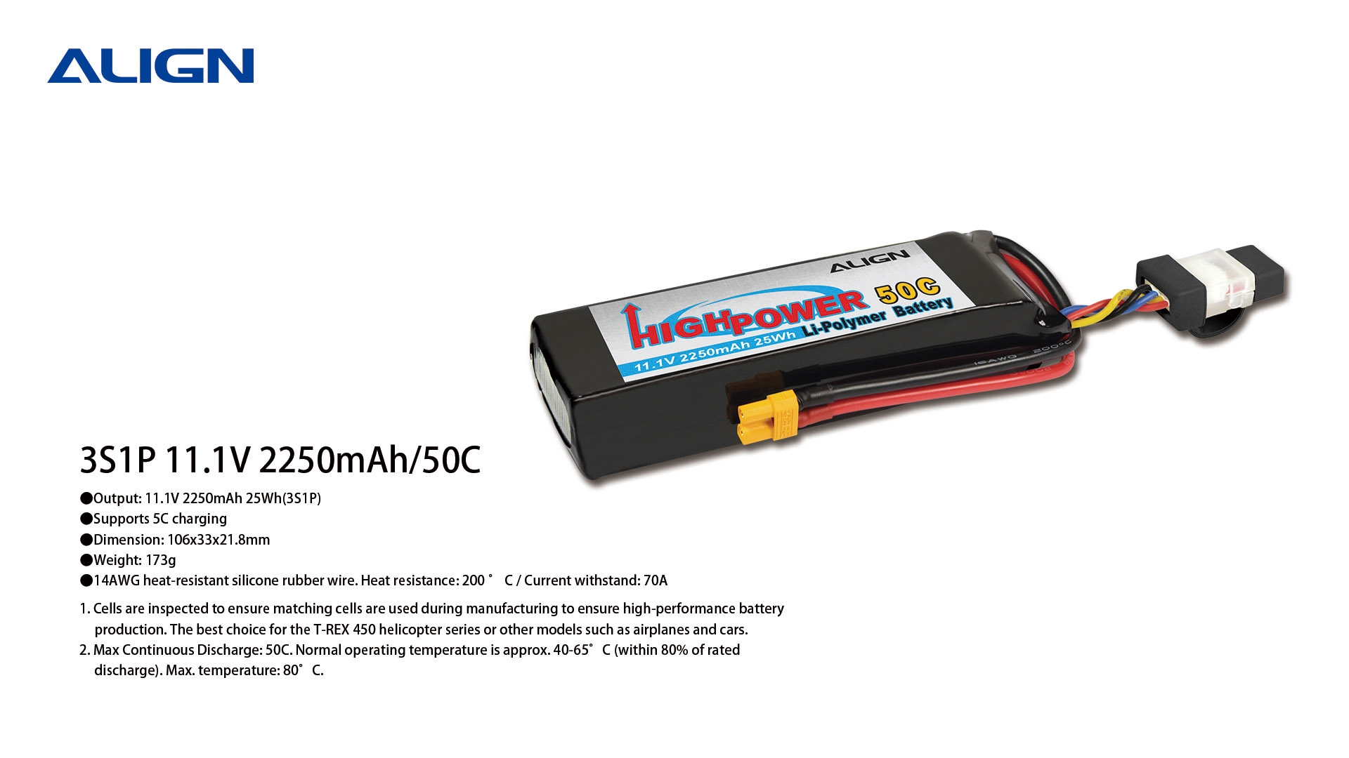 ●Output: 11.1V 2250mAh 25Wh(3S1P)